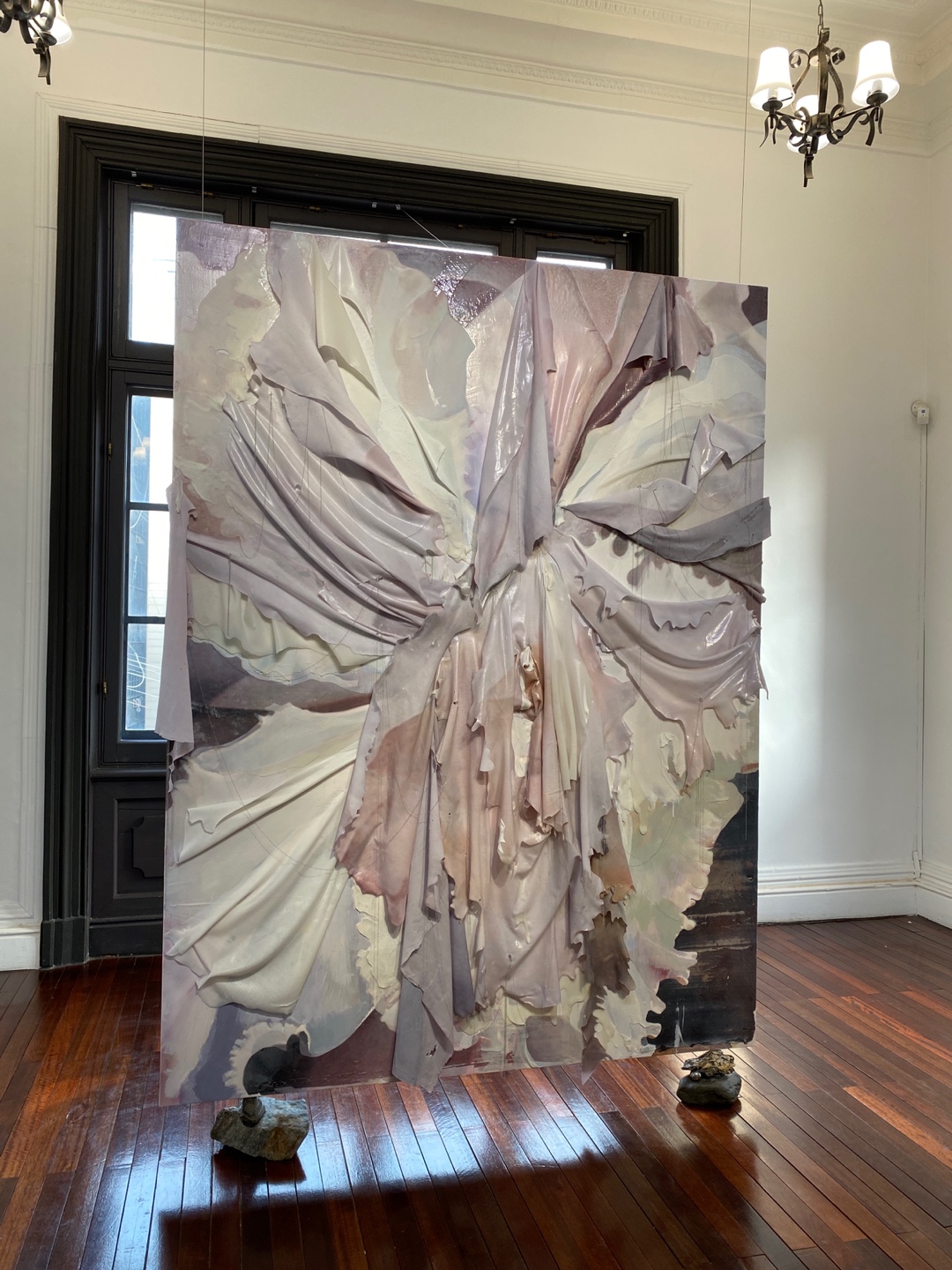정희민 작가는 2층에 4개의 작품을 전시하고 있다. 멀리서 볼때는 아름답게 보여지지만, 가까이서 보면 약간 기괴하게 보일 수도 있는 4점의 작품이 있다.