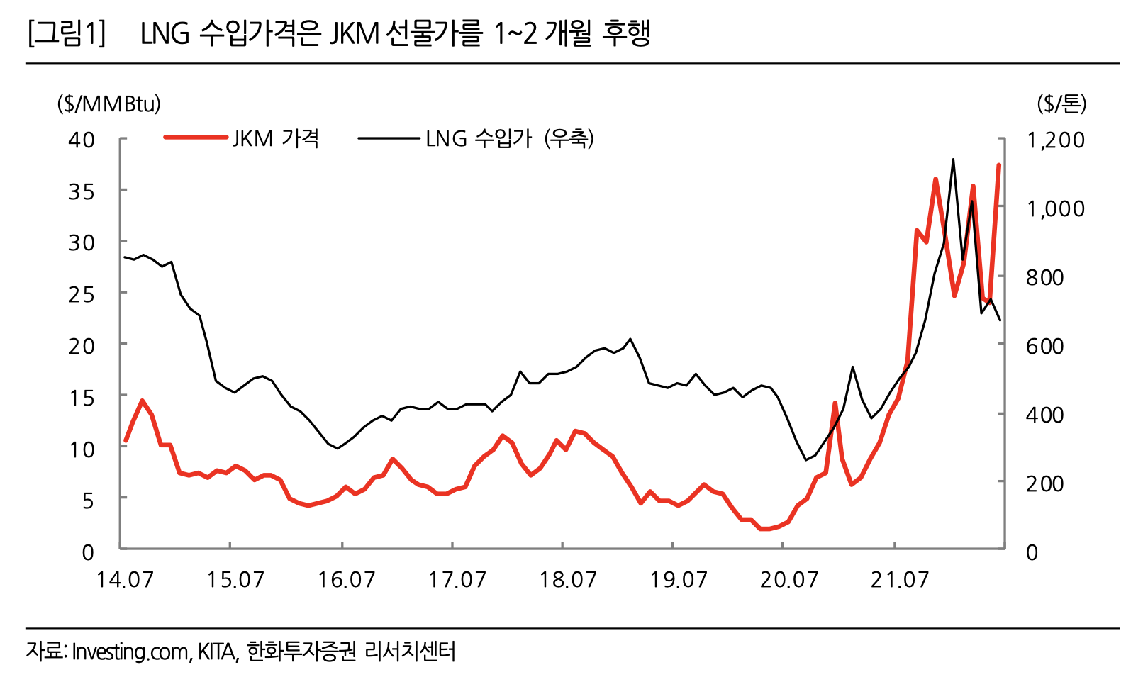 - 스팀 판매단가는 LNG 수입가에 연동되며, LNG 수입가는 JKM(Japan Korea Marker)를 1~2개월 후행